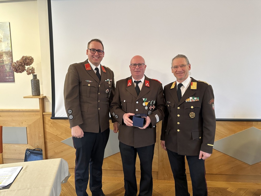 Eine besondere Ehrung wurde HFM Erich Treissmann zuteil. Ihm wurde anlässlich seines 50. Geburtstages im vergangenen Jahr eine Uhr als Geschenk und Zeichen der Wertschätzung überreicht.