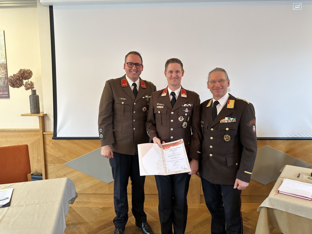 BM Michael Marx erhielt eine Urkunde für die mit gutem Erfolg abgelegte Kommandantenprüfung – ein weiterer wichtiger Schritt in seiner Feuerwehrlaufbahn.